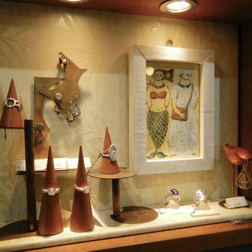 夏の小さな展覧会はじまりました。 美しいねずみ色の壁にいい絵並んでます。 店主の創作ジュエリーに囲まれたひみつきちのような空間 ぜひぜひおいでくださいませ。 &…