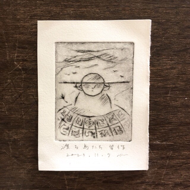 銅版画教室。ドライポイントの体験へ。 銅板にニードルでガリガリやる。そわそわの気持ちと勢いだけで削ったけれどインクで刷られた線がきれい。濃い線ってきれいだなぁ。…