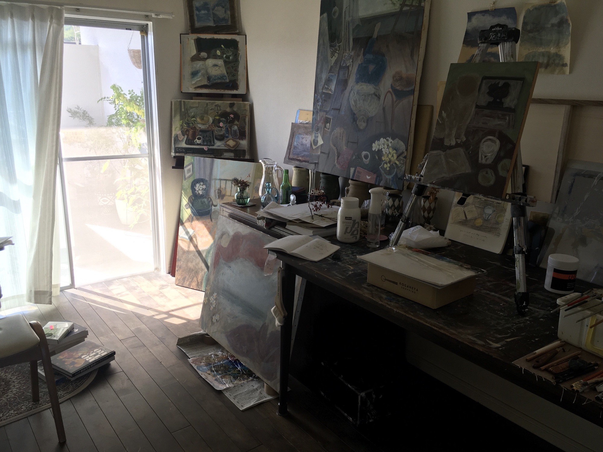 画家の植村ヤエコさんが個展に来てくださり、キャンバス作品の背景色を褒めてくださった。 その色は悩みに悩み、何度も塗り重ね、今の私にはもうこれ以上はできないという…