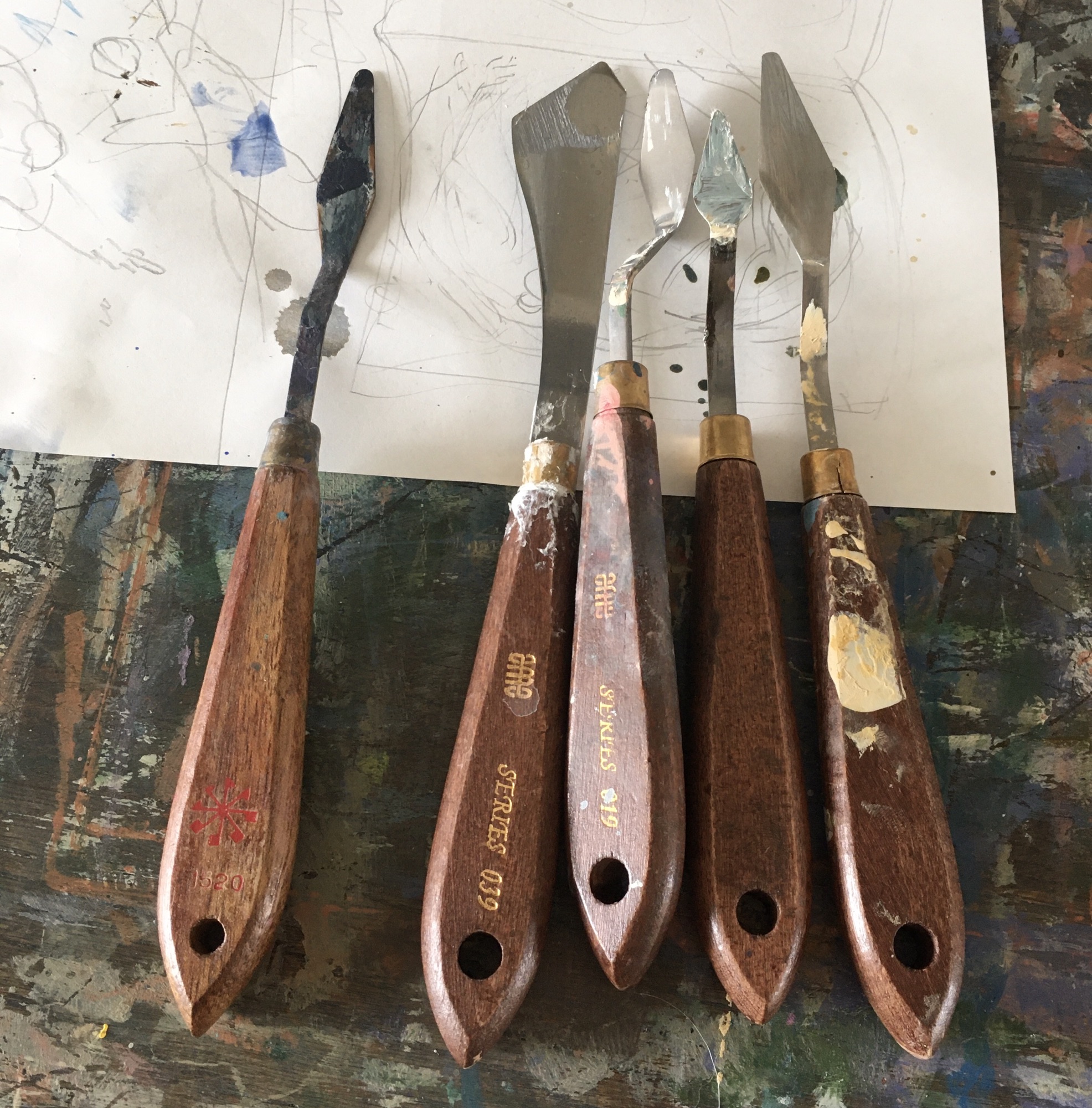 最近傾倒している画家のパレット(というかキャスターまんま)はドロドロのめちゃくちゃで、描いてきた時間を物語っている。 道具も几帳面には手入れされていない雰囲気を…
