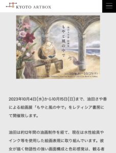 京都の文化芸術を発信するポータルサイトKYOTO ART BOXにて、この度の個展についてご紹介頂いています。
