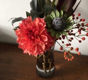 先月。個展で職場の方が贈ってくださった。ダリア、アーティチョーク、ノバラ 美しや…