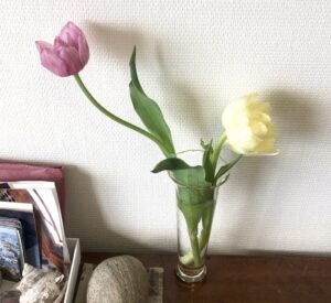 季節外れのチューリップ。ひらいてもなお可愛い。